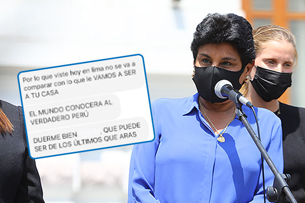 «Empezaremos contigo y terminaremos con Castillo y su familia en Cajamarca. Se van a arrepentir de no renunciar. El mundo conocerá al verdadero Perú. Duerme bien per... que puede ser lo último que harás», escribió.