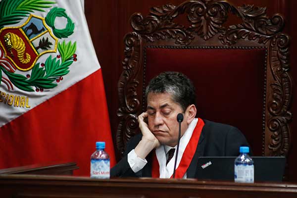 Mientras el pleno del Tribunal Constitucional (TC) revisaba el hábeas corpus presentado por la familia de Keiko Fujimori para anular la prisión preventiva en su contra, el magistrado Eloy Espinosa Saldaña fue captado por las cámaras durmiendo.