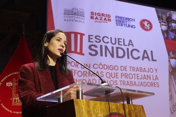 La congresista de Cambio Democrático - Juntos por el Perú, Sigrid Bazán, participó en la 'III Escuela Sindical', un evento que llevó a cabo su despacho el último sábado.
