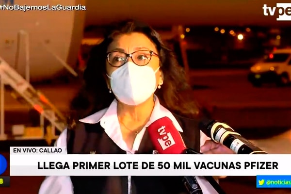 Tras el arribo de 50 mil dosis de la vacuna anticovid de Pfizer, la presidenta del Consejo de Ministros, Violeta Bermúdez, afirmó que, en total, el laboratorio estadounidense entregará al Perú 20 millones de sueros.