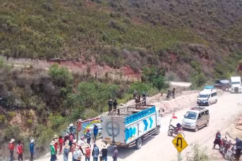 Imagen Política 23 Dic 2021 - 14:22 Mirtha Vásquez: "Comunidades de Chumbivilcas desbloquearon carretera usada por mina Las Bambas" Corredor minero sur queda operativo tras tregua acordada hasta el 30 de diciembre. Imagen Economía 23 Dic 2021 - 01:00 Chumbivilcas desbloquea el Corredor Minero El 30 de diciembre habrá nueva reunión con el Gobierno. Imagen Política 21 Dic 2021 - 00:47 Chumbivilcas: incendian un nuevo campamento minero Pobladores de Pumallaqta ahuyentaron a trabajadores y quemaron mobiliario. Imagen Actualidad 20 Dic 2021 - 10:51 Chumbivilcas: campamento minero de Anabi fue incendiado tras ultimátum de comuneros Pobladores consideran que la compañía no ha cumplido con el proceso de cierre. Imagen Actualidad 19 Dic 2021 - 15:47 Las Bambas: PCM realizará una reunión este martes entre partes involucradas Secretaría de Diálogo y el gobernador del Cusco, Jean Paul Benavente, coordinaron este domingo el proceso para facilitar el tránsito en el corredor minero sur. Cargar más