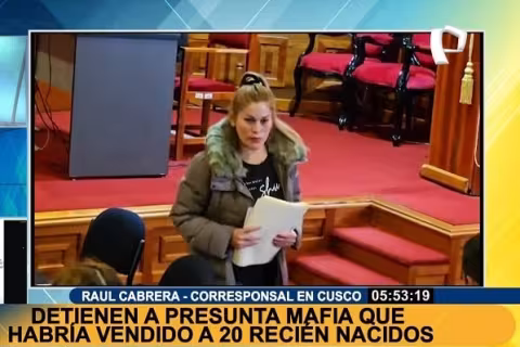 Imagen Actualidad 17 Sep 2023 - 12:32 Cusco: eliminan pruebas físicas en local donde se vendían bebés Lugar fue desocupado en su totalidad. Imagen Judicial 15 Sep 2023 - 14:02 Trata de bebés en Cusco: jueza y fiscal incompetentes se culpan de fuga de líder de mafia Autoridades se contradicen por la liberación de Rosa Huaihua. Imagen Judicial 12 Sep 2023 - 06:39 Cusco: así fue la captura de exalcalde que integraría presunta red criminal Durante el operativo se capturó a exalcalde distrital, Edilberto Companocca. Imagen Actualidad 12 Sep 2023 - 04:08 Trafico de bebés: hallan catálogo de recién nacidos en WhatsApp ofreciéndolos como 'machitos y 'hembritas' Centro obstétrico intervenido por la Fiscalía sería el lugar donde se practicarían abortos clandestinos a jóvenes madres. Imagen Política 11 Sep 2023 - 14:29 Cusco: Congreso solicita informe al MIMP y Fiscalía por peligrosa red de trata de bebés Envió un oficio a la fiscal de la Nación, Liz Patricia Benavides. Imagen Actualidad 10 Sep 2023 - 03:38 ¡Ola de calor!: selva norte soportará altas temperaturas de hasta 37°C Calor diurno también aumentará en la sierra este lunes 11 y martes 12 de septiembre, pronostica Senamhi. Imagen Actualidad 9 Sep 2023 - 05:04 Muerte en vía Machu Picchu - Ollantaytambo: todo sobre el derrumbe, descarrilamiento del tren y estado de sobrevivientes Deslizamiento ocurrió en el km 80. Cargar más PUBLICIDAD