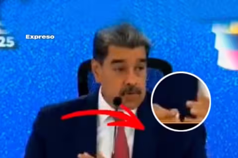 Imagen Mundo 16 Sep 2025 - 15:24 Tirano Nicolás Maduro luce ostentoso Rolex y anillos de oro con esmeraldas en rueda de prensa internacional, pero algo más pasó Situación se tornó aún más reveladora cuando, en plena transmisión, un asistente le hizo una señal discreta. Redacción Expreso