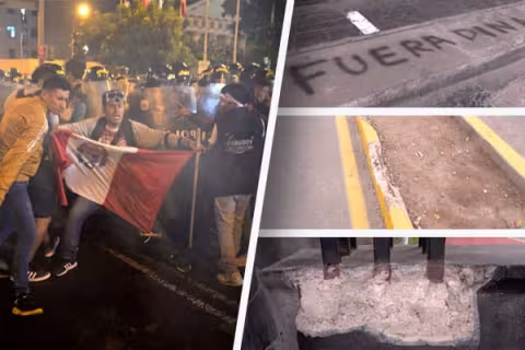 Imagen Actualidad 21 Jul 2023 - 05:37 'Toma de Lima' produjo daños de miles de soles en la vía pública Árboles, sardineles y fachadas fueron afectadas por manifestantes.