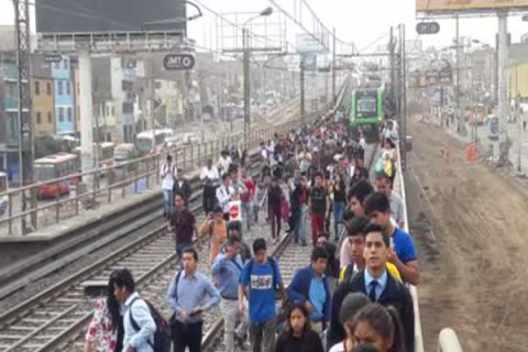 Imagen Actualidad Sección 03 25 Abr 2019 - 02:10 Mil personas varadas por fallas en Metro de Lima Pasajeros arriesgan sus vidas al bajar de vagones y caminar sobre las vías del tren.