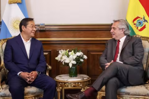 Imagen Mundo 11 May 2022 - 07:24 Arce no irá a Cumbre de las Américas si se prohíbe participación de dictaduras Por su lado, Andrés Manuel López Obrador aseguró que, de no invitar a Nicaragua, Cuba y Venezuela, tampoco asistirá al evento. Imagen Mundo 8 Abr 2022 - 06:00 Presidentes de Argentina y Bolivia piden «respetar» la democracia en Perú Aseguran que «la derecha» busca destruir lo obtenido en las urnas. Imagen Política 11 Mar 2022 - 03:32 Pedro Castillo se reunió en Chile con presidente de Bolivia, Luis Arce Para intercambiar acuerdos bilaterales y fortalecer lazos históricos. Imagen Mundo 14 Nov 2021 - 11:53 Vicepresidente de Bolivia a la oposición: "No despierten la ira del inca" Así lo manifestó David Choquehuanca, tras la anulación de la Ley 1386. Cargar más