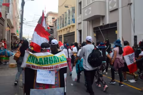 Imagen Actualidad 20 Ene 2023 - 15:00 Protestas en Lima: «pacíficos» manifestantes piden la cabeza de Dina Boluarte Andahuaylinos, paisanos de la presidenta, tomaron la ciudad con violencia un día más.