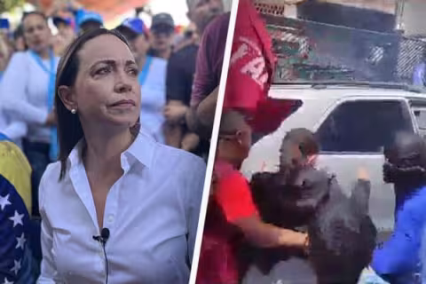 Imagen Mundo 15 Jul 2023 - 12:39 María Corina Machado: así atacaron chavistas a opositora al régimen durante evento [VIDEO] Violentos detractores gritaron y agredieron a ex candidata presidencial.