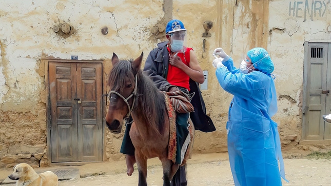 En la región Amazonas, un adulto mayor con problemas para transportarse, recibió, montado en su caballo, la primera dosis de la vacuna contra la COVID-19, atrayendo así todas las miradas de la zona a la que arribó.