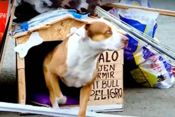 Can de raza pitbull lleva dicho tiempo en exteriores de nosocomio.