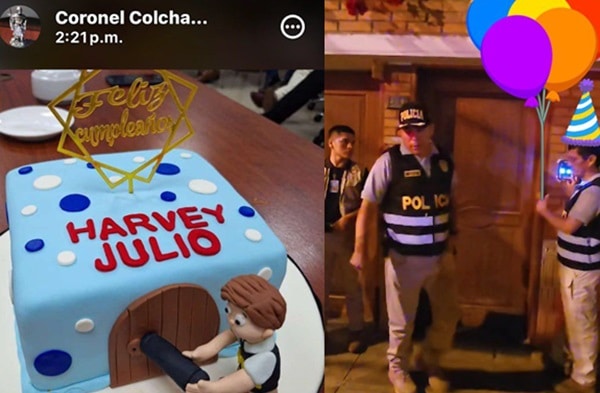 El jefe de la División de Investigación de Delitos de Alta Complejidad (Diviac), Harvey Colchado, celebró su cumpleaños con un curioso pastel, se le vio adornado con dibujos en una imagen donde se encontraba fuera del domicilio de la presidenta Dina Boluarte.
